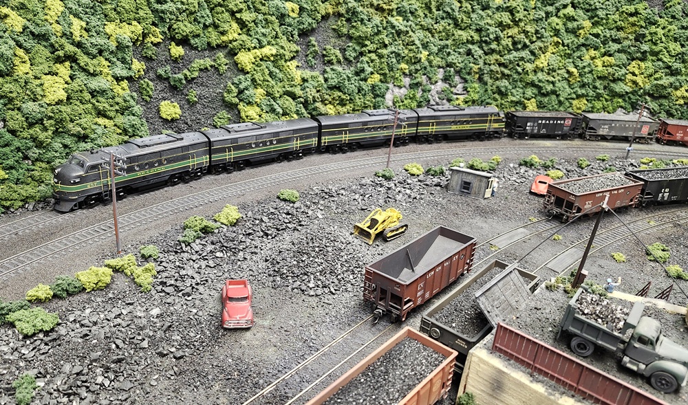 Twenty coal mines, loaders, and truck dumps populate the layout with numerous mine runs called during a session. Several symbol freights, passenger trains, and interchanges with the LNE, CNJ, and PRR, as well as extra movements, make for a busy railroad. The highlights on the railroad are the helper grades with the Locust Summit grade being the main attraction. The layout has five yards, three of which are manned by a yardmaster.