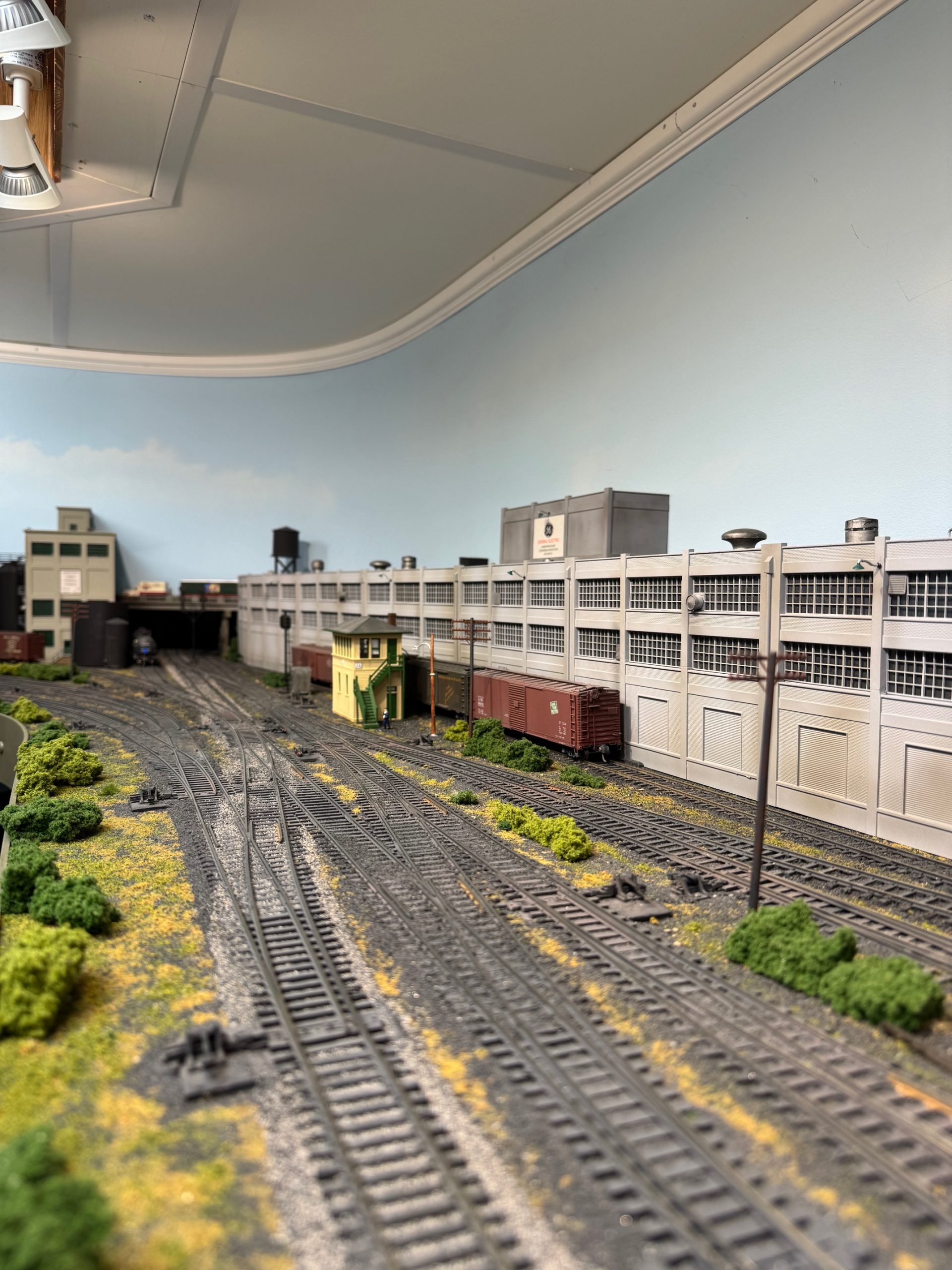 Mainline is a portion of the fictitious CNY&NE mainline that runs between Paterson NJ and Oneonta NY which is owned and controlled by the NYC, Erie and D&H railroads. Through freights, local freights, and a few passenger trains provide interchange traffic at the yards in Crawford and Northfork. A branch line runs from Jefferson to Millrun with coal operations and lots of local general industries to switch. Port Hendrick Yard is run by the Maywood Terminal Railroad and has a carfloat operation to deliver cars across the Hudson River and on towards New England. A new family room addition is the D&H branch line to Franklin Mills providing lots of switching to 8 heavy industries.