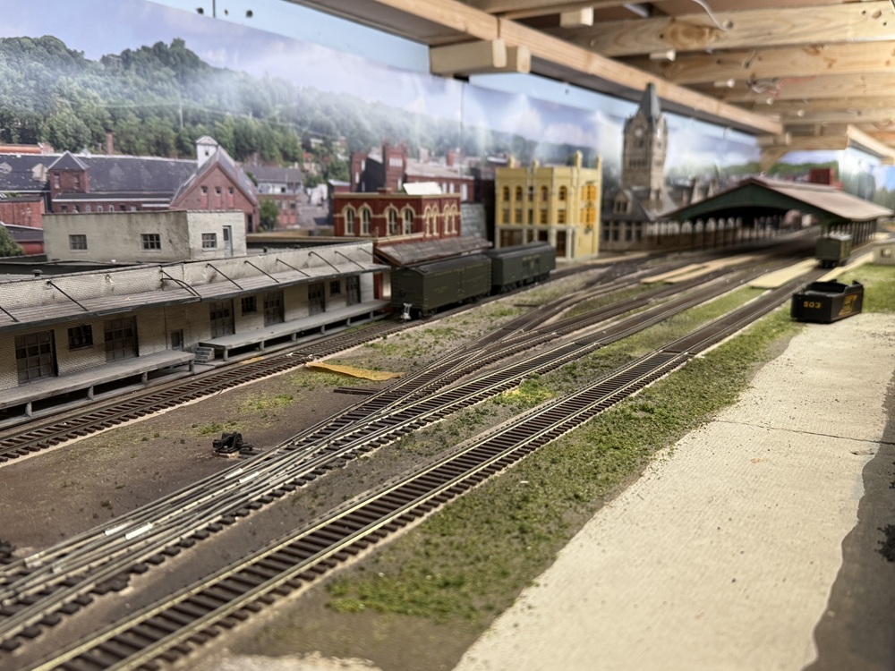 Most of the passenger trains have switching. This keeps the passenger switcher busy with milk, express, and mail set outs and pick ups. Several trains have Pullmans that are set out en route or picked up enroute. Pullman cars are often left in passenger stations until morning so people can sleep in. Pullman and diner cars are serviced at special commissary tracks. Diners are set out enroute in some cases.